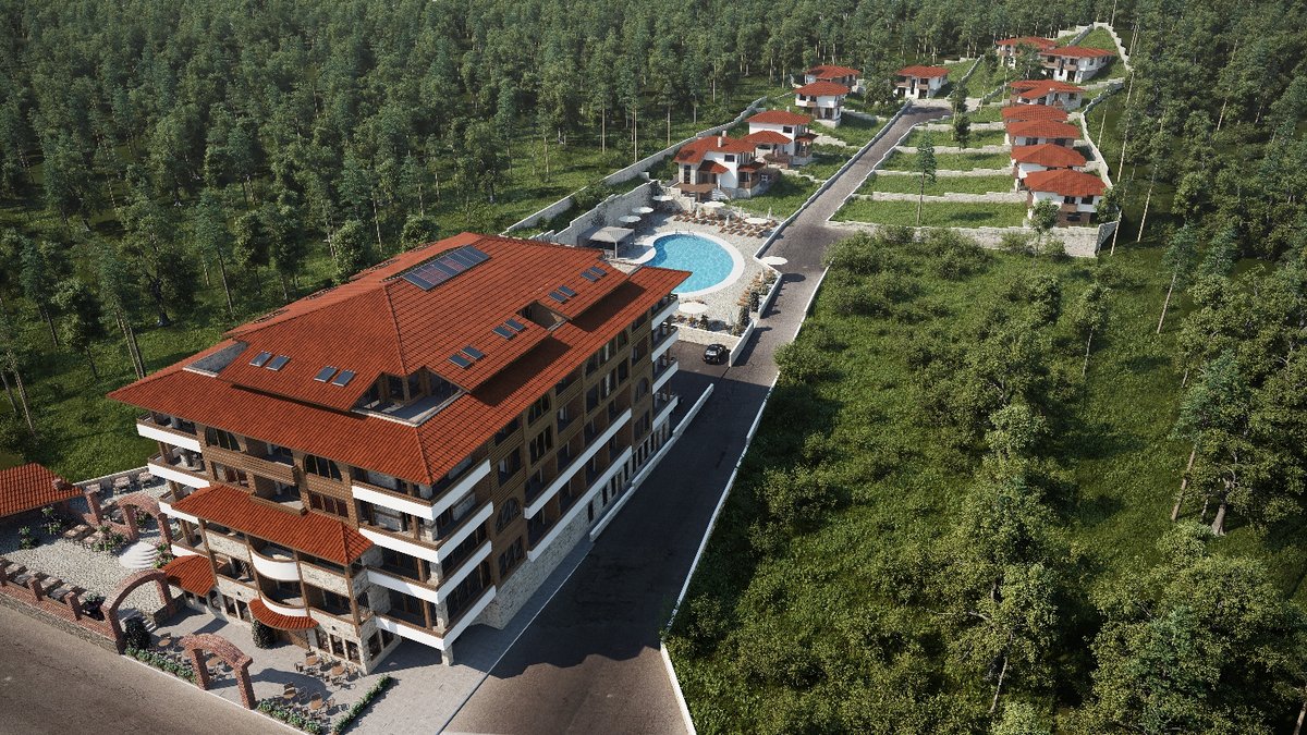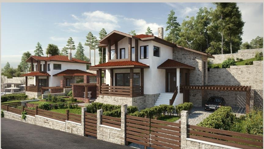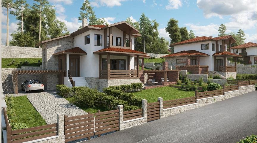 12 семейни вили с площ от около 180 кв.м., всяка от които е разположена в самостоятелен парцел с площ около 600 кв.м. Вилите са построени по индивидуален проект и разполагат с 3-4 спални, хол, трапезария, кухня, гараж и веранда с барбекю. Вилите се предлагат завършени “до ключ” и с пълно обзавеждане;